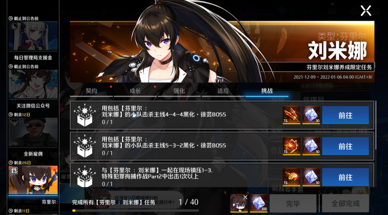 [养成限定任务开放时间] 2021/12/9更新维护后至2022/1/6 4:00