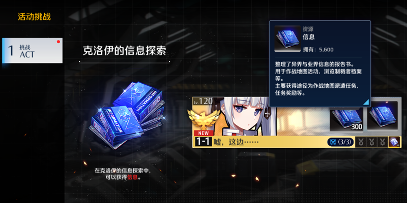 新增挑战「克洛伊的信息探索」为老板解读手册的使用方法,跟随挑战探索成功后,还将得到大量的道具“信息”用于作战地图探索以及查阅制裁者档案。这正是老板补充信息资源的绝佳途经。